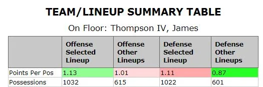 One of the more bizarre on/off splits I’ve seen on hooplens.com involves EMU; specifically, their star big man, James Thompson IV. Thompson is, by far, the team’s best defensive rebounder and a solid shot-blocker, a paint presence on the back line of the zone. That said, it’s a bit baffling that the team’s defense completely cratered with him on the court, while it was completely elite with him on the bench: