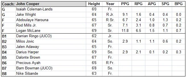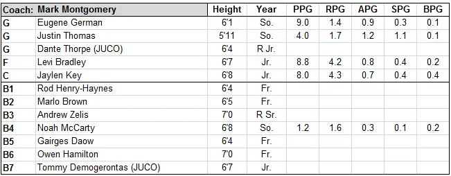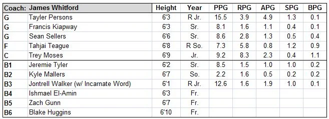 Key Returners: Taylor Persons, Trey Moses, Francis Kiapway, Sean Sellers, Tahjai Teague, Jeremie Tyler