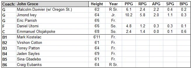 Groce’s best teams at Ohio (his previous MAC stop) emphasized guardplay – strong ball movement, few turnovers, efficient outside shooting. As thin as this roster is, he’ll have two nice pieces to build around with Oregon State transfer Malcolm Duvivier and the lone returning starter, Jimond Ivey. Duvivier is a tank, and his ability to get to the rim (and finish using his wide frame) should make him an immediate impact player as he steps down in competition. Ivey is a solid defender and jack-of-all-trades on offense who will need to score even more after deferring to the upperclassmen last year. Both players should thrive in Groce’s scheme, although their supporting cast is a complete mystery.