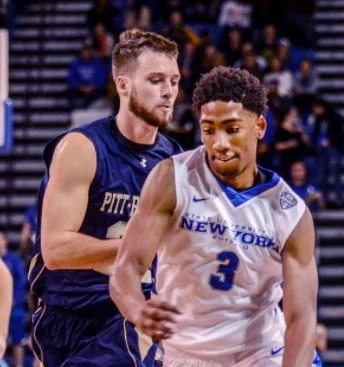 CJ Massinburg sporting the sharp "State University of NEW YORK - Buffalo" jerseys