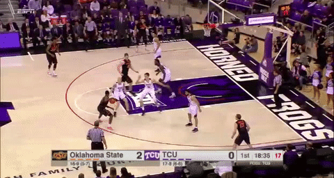 Underwood has instilled a fast-paced brand of basketball upon his talented, athletic team, encouraging attacking in transition off steals and defensive rebounds. The Pokes play at the nation’s 76th fastest pace in the country, and rank 20th in initial field goal attempt percentage in transition (per Hoop-Math.com). This style is made possible, and executed to perfection, by the brilliant Jawun Evans, one of the best point guards in the country. Evans is perhaps the fastest player I’ve ever seen stride down a basketball court. Just look at how quickly he gets down the court in this transition opportunity: