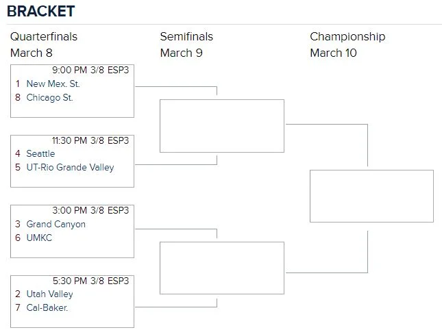 - The 1 and 2 seeds have dominated this tournament due to the lack of depth (and GCU's ineligibility) - with a slightly deeper conference this year (Seattle and UT-RGV could be feisty, and GCU vs. UVU will be a great game), there could be an added element of unpredictability this year.