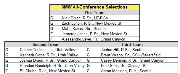- Grand Canyon - The Antelopes have struggled to find offense this year, as subbing in the steady hand of Casey Benson for the dynamic scoring of Dewayne Russell has hampered the one-on-one creation. However, Alessandro Lever's emergence into a bonafide #1 scoring option during conference play (#2 in usage rate, #1 in % of shots taken) has been a revelation. If he stays out of foul trouble, Majerle's Men could take the crown.