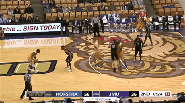 Or speeding to his left and turning the corner to finish over a shot-blocker (aside - that James Madison court design looks like Spike from Tom and Jerry put on a duke’s hat and melted into a basketball court):