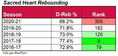 Sacred Heart finished 9th of 10 NEC teams in overall KenPom rank, with the defense coming in at a nauseating 348th nationally. At BartTorvik, SHU edged St. Francis (PA) for 8th in the NEC.